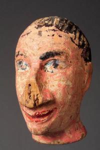 - NOTIZIE STORICO CRITICHE Teste prodotte artigianalmente in serie dalla prima metà dell'800 fino alla seconda guerra mondiale. Le varie famiglie di scultori si specializzavano nei soggetti che affluivano ad un committente che le acquistava.\nQuesti le cedeva a venditori ambulanti che riempivano le gerle di queste teste e di altri manufatti in legno prodotti nella zona (giocattoli,stoviglie,ciotole). Si ritrovano teste in collezioni di varie parti d'Europa dall'Inghilterra alla Grecia, dalla Francia ai Paesi dell'est Europa. In Italia sono presenti nelle seguenti collezioni pubbliche:Museo Teatrale alla Scala, Scuola Paolo Grassi, Museo Faraggiana di Novara, il Castello dei Burattini di Parma, Collezione Forlai del Comune di Forlì,e in numerose collezioni private, tra queste la più importante è la Collezione Mercuriali di Cesenatico. Queste teste, per la maggioranza di piccole dimensioni servivano poi per essere "vestite" e diventare burattini oppure con l'aggiunta successiva di un corpo (non prodotto in Val Gardena), diventare marionette. Le teste prodotte in dimensioni maggiori erano utilizzate da burattinai e marionettisti professionisti. Le teste dopo essere state pennellate di bianco, venivano dipinte a tempera e assumevano l'aspetto semilucido con l'aggiunta, successiva, di chiaro d'uovo. I soggetti relativi alle teste erano anche differenziati per aree culturali (Fagiolino,Sandrone,Gioppino: per l'Italia settentrionale; Guignol e Gnafron\nper la francia; Punk e Judy per l'Inghilterra, Kasperl per la Germania e i Paesi dell'Est Europeo), mentre le maschere della Commedia Dell'Arte ( Arlecchino, Brighella, Dottore, Capitano, Pantalone, ecc.), erano distribuite in tutta Europa.