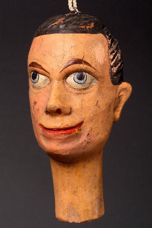 - NOTIZIE STORICO CRITICHE Teste prodotte artigianalmente in serie dalla prima metà dell'800 fino alla seconda guerra mondiale. Le varie famiglie di scultori si specializzavano nei soggetti che affluivano ad un committente che le acquistava.\nQuesti le cedeva a venditori ambulanti che riempivano le gerle di queste teste e di altri manufatti in legno prodotti nella zona (giocattoli,stoviglie,ciotole). Si ritrovano teste in collezioni di varie parti d'Europa dall'Inghilterra alla Grecia, dalla Francia ai Paesi dell'est Europa. In Italia sono presenti nelle seguenti collezioni pubbliche:Museo Teatrale alla Scala, Scuola Paolo Grassi, Museo Faraggiana di Novara, il Castello dei Burattini di Parma, Collezione Forlai del Comune di Forlì,e in numerose collezioni private, tra queste la più importante è la Collezione Mercuriali di Cesenatico. Queste teste, per la maggioranza di piccole dimensioni servivano poi per essere "vestite" e diventare burattini oppure con l'aggiunta successiva di un corpo (non prodotto in Val Gardena), diventare marionette. Le teste prodotte in dimensioni maggiori erano utilizzate da burattinai e marionettisti professionisti. Le teste dopo essere state pennellate di bianco, venivano dipinte a tempera e assumevano l'aspetto semilucido con l'aggiunta, successiva, di chiaro d'uovo. I soggetti relativi alle teste erano anche differenziati per aree culturali (Fagiolino,Sandrone,Gioppino: per l'Italia settentrionale; Guignol e Gnafron\nper la francia; Punk e Judy per l'Inghilterra, Kasperl per la Germania e i Paesi dell'Est Europeo), mentre le maschere della Commedia Dell'Arte ( Arlecchino, Brighella, Dottore, Capitano, Pantalone, ecc.), erano distribuite in tutta Europa.