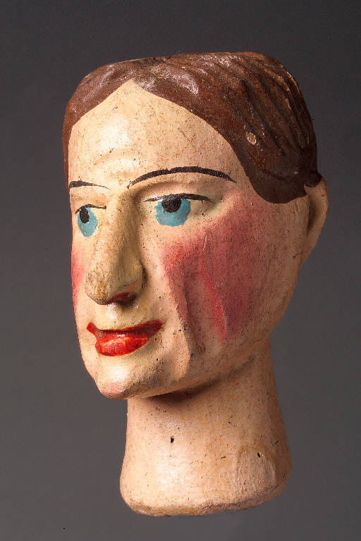 - NOTIZIE STORICO CRITICHE Teste prodotte artigianalmente in serie dalla prima metà dell'800 fino alla seconda guerra mondiale. Le varie famiglie di scultori si specializzavano nei soggetti che affluivano ad un committente che le acquistava.\nQuesti le cedeva a venditori ambulanti che riempivano le gerle di queste teste e di altri manufatti in legno prodotti nella zona (giocattoli,stoviglie,ciotole). Si ritrovano teste in collezioni di varie parti d'Europa dall'Inghilterra alla Grecia, dalla Francia ai Paesi dell'est Europa. In Italia sono presenti nelle seguenti collezioni pubbliche:Museo Teatrale alla Scala, Scuola Paolo Grassi, Museo Faraggiana di Novara, il Castello dei Burattini di Parma, Collezione Forlai del Comune di Forlì,e in numerose collezioni private, tra queste la più importante è la Collezione Mercuriali di Cesenatico. Queste teste, per la maggioranza di piccole dimensioni servivano poi per essere "vestite" e diventare burattini oppure con l'aggiunta successiva di un corpo (non prodotto in Val Gardena), diventare marionette. Le teste prodotte in dimensioni maggiori erano utilizzate da burattinai e marionettisti professionisti. Le teste dopo essere state pennellate di bianco, venivano dipinte a tempera e assumevano l'aspetto semilucido con l'aggiunta, successiva, di chiaro d'uovo. I soggetti relativi alle teste erano anche differenziati per aree culturali (Fagiolino,Sandrone,Gioppino: per l'Italia settentrionale; Guignol e Gnafron\nper la francia; Punk e Judy per l'Inghilterra, Kasperl per la Germania e i Paesi dell'Est Europeo), mentre le maschere della Commedia Dell'Arte ( Arlecchino, Brighella, Dottore, Capitano, Pantalone, ecc.), erano distribuite in tutta Europa.
