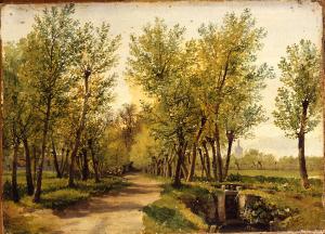 - NOTIZIE STORICO CRITICHE Dal 2000 la tela risulta non rintracciata. A testimonianza delle caratteristiche formali del piccolo dipinto, rimane la descrizione fornitaci dal catalogo Electa: l'opera, caratterizzata dalla ricerca degli effetti di luce, raffigura, con un punto di vista basso e ravvicinato, un tratto di campagna lombarda da cui si intravede il Duomo di Milano sullo sfondo.