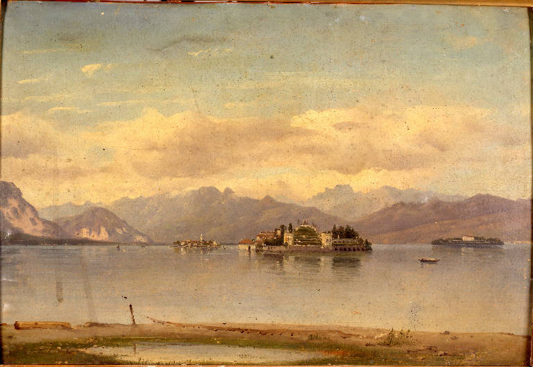 - NOTIZIE STORICO CRITICHE Il piccolo quadro, pervenuto in Accademia con il Legato Stampa (1900), veniva presentato all'Esposizione di Brera del 1852 insieme ad altri nove dipinti e, due anni dopo, nuovamente riproposto alla Promotrice di Belle Arti di Torino con la stima di 350 lire. Sebbene il pittore, sulle pagine dell'"Album" di quell'anno, venisse annoverato tra i migliori paesaggisti milanesi al pari di Giuseppe Bisi, Luigi Lelli e lo Steffani, le "Gemme" prima, e il "Crepuscolo" poi, non macheranno di far notare che nelle sue opere vi sia "certa uniformità di tinte e un cotale abuso di luce che non è del miglio effetto" (le "Gemme", 1852), oltre ad una "soverchia tendenza al lezioso, frutto di una sua nuova imitazione, per la quale l'artista ha sostituito ancora lo studio servile di qualche quadro alla libera osservazione del vero". Il piccolo cartone, raffigurante una veduta delle tre isole Borromee, per la stesura nitida e tersa del paesaggio, definito da veloci pennellate interrotte da improvvisi tocchi di luce, è molto vicina al "Battello sul lago Maggiore", tanto che si potrebbe pensare ne sia un "pendant".