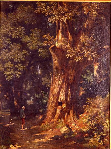 - NOTIZIE STORICO CRITICHE La tela, rappresentante un interno di bosco animata dalla silenziosa figura di un vecchio, entrò in Accademia con il lascito Stampa comprendente altre otto opere dell'artista, testimonianti la predilizione del collezionista per quest'artista e per il genere del paesaggio.