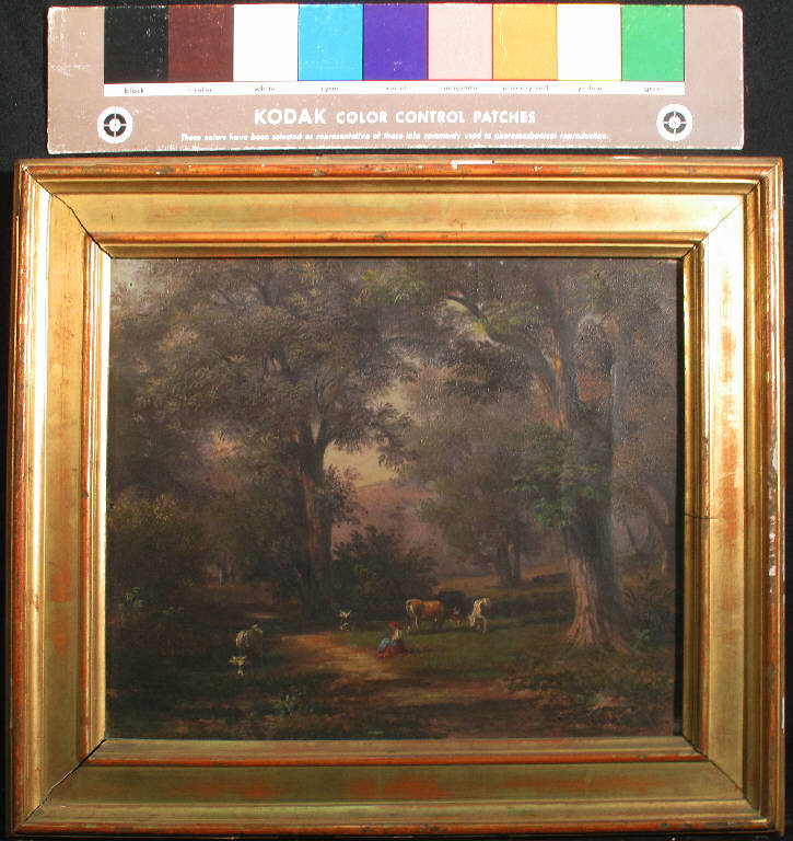 Bosco. PAESAGGIO CON ANIMALI E CONTADINA