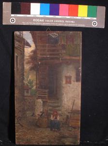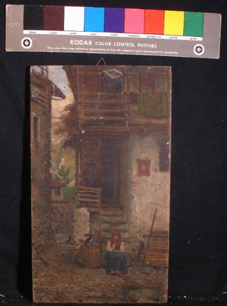 - NOTIZIE STORICO CRITICHE Diversamente dagli altri dipinti del Villa questa tela e le "Lavandaie" sono contrassegnati dalla sigla "V.F.". Il confronto con le altre opere dell'artista, non può che confermare l'esecuzione di questi dipinti allo stesso Villa. Lo scorcio di paese ivi rappresentato potrebbe essere identificato con uno dei paesi sui monti lariani, assiduamente frequentati dal Villa e proposti in molti suoi dipinti.