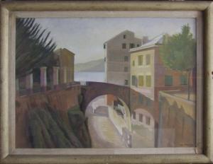 - NOTIZIE STORICO CRITICHE Il dipinto rappresenta una veduta di Camogli, dove l'artista riedeva in quegli anni. Il tono novecentesco si ritrova nella semplicità geometrica delle forme e nella prospettiva a quinte teatrali.