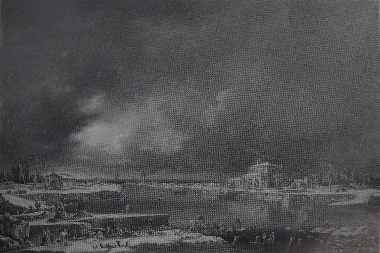 - NOTIZIE STORICO CRITICHE Il dipinto, tipico soggetto dei paesaggi di Fidanza con "nebbia e nevicate", contiene riferimenti evidenti al vedutismo veneto e del paesaggio studiato nei suoi diversi aspetti stagionali, senza tuttavia escludere l'influenza dei modelli olandesi.