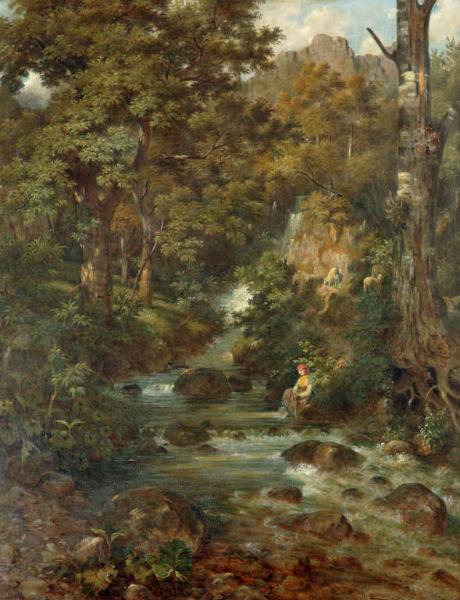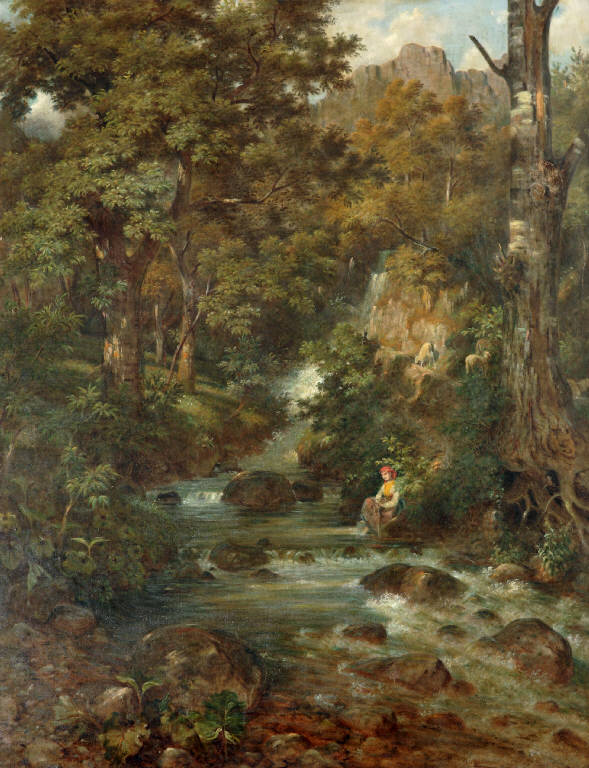 - NOTIZIE STORICO CRITICHE Nel 1908 il dipinto del Villa risulta esposto nella Sala XXXII della Pinacoteca di Brera assieme ad altre tre grandi tele. Il paesaggio boscoso con torrente, in cui è inserita la figura di una pastorella, dimostra quanto l'artista fosse aggiornato sui temni della pittura di paesaggio nordica spesso presente alle rassegne braidensi.