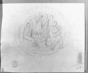 - NOTIZIE STORICO CRITICHE Il disegno è un primo studio per la medaglia commemorativa del fallito attentato a Napoleone, avvenuto il 24/12/1800, costituendo il termine post quem per la datazione. Il soggetto è risolto attraverso una composizione col Tempo e le Parche. La medaglia venne incisa da Luigi Manfedini e coniata presso la Zecca di Milano. L'iconografia tornerà nei "Fasti Napoleonici", ma distesa nel campo rettangolare della tela e arricchita da ulteriori particolari.