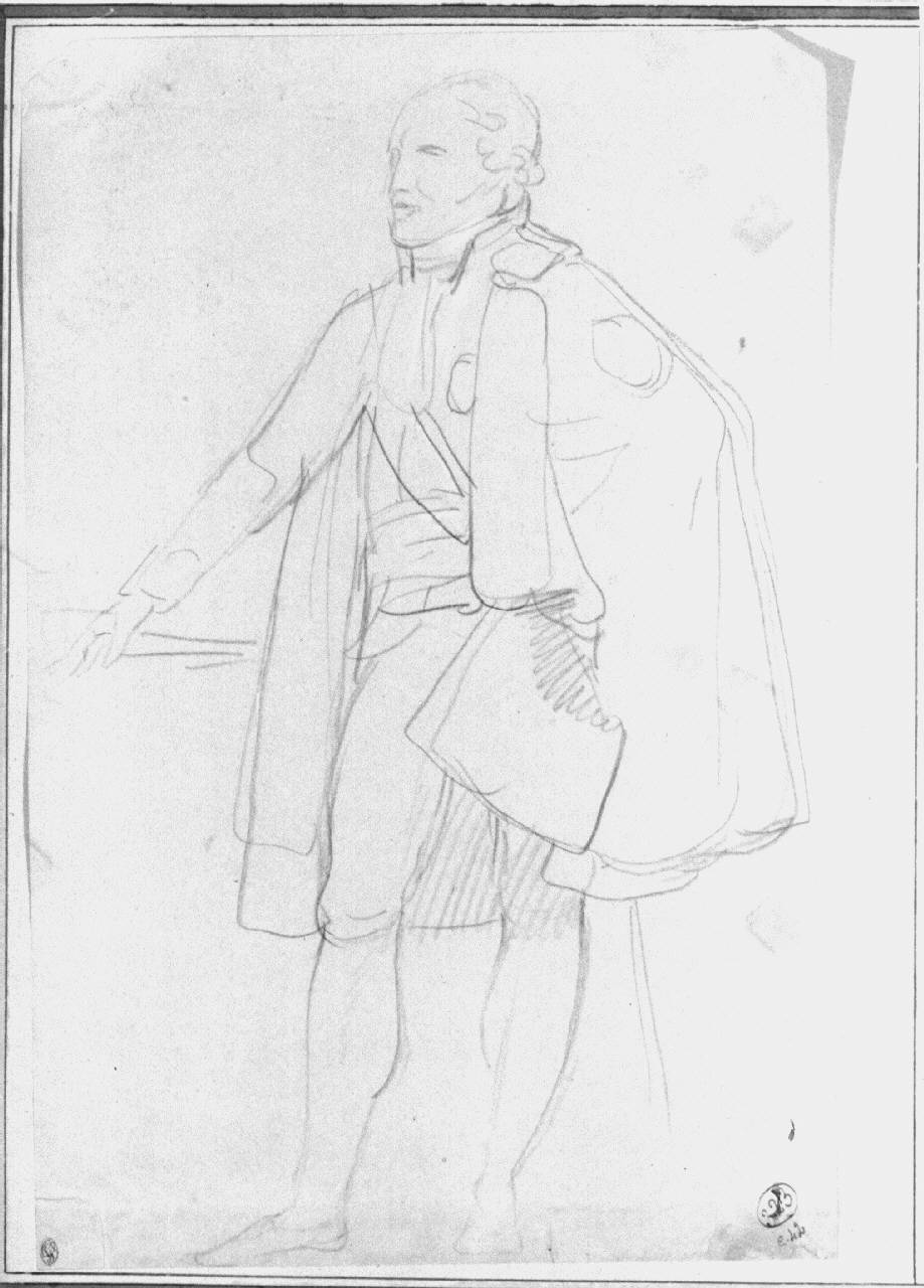 - NOTIZIE STORICO CRITICHE Il disegno è lo studio per il ritratto di uomo con uniforme (un ministro o un ufficiale), sebbene il non alto grado di definizione dell'immagine non permetta una sicura identificazione del soggetto. Lo schema compositivo è quello usato da Appiani per i ritratti "ufficiali" di Ministri napoleonici negli anni tra il 1805 e il 1810 (ad esempio il "Ritratto del Marchese di Breme", 1806).