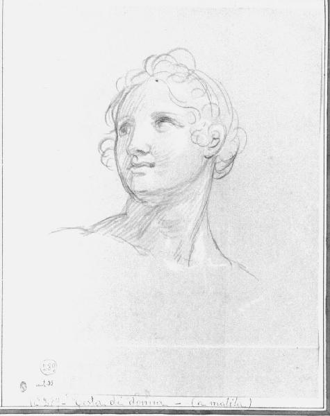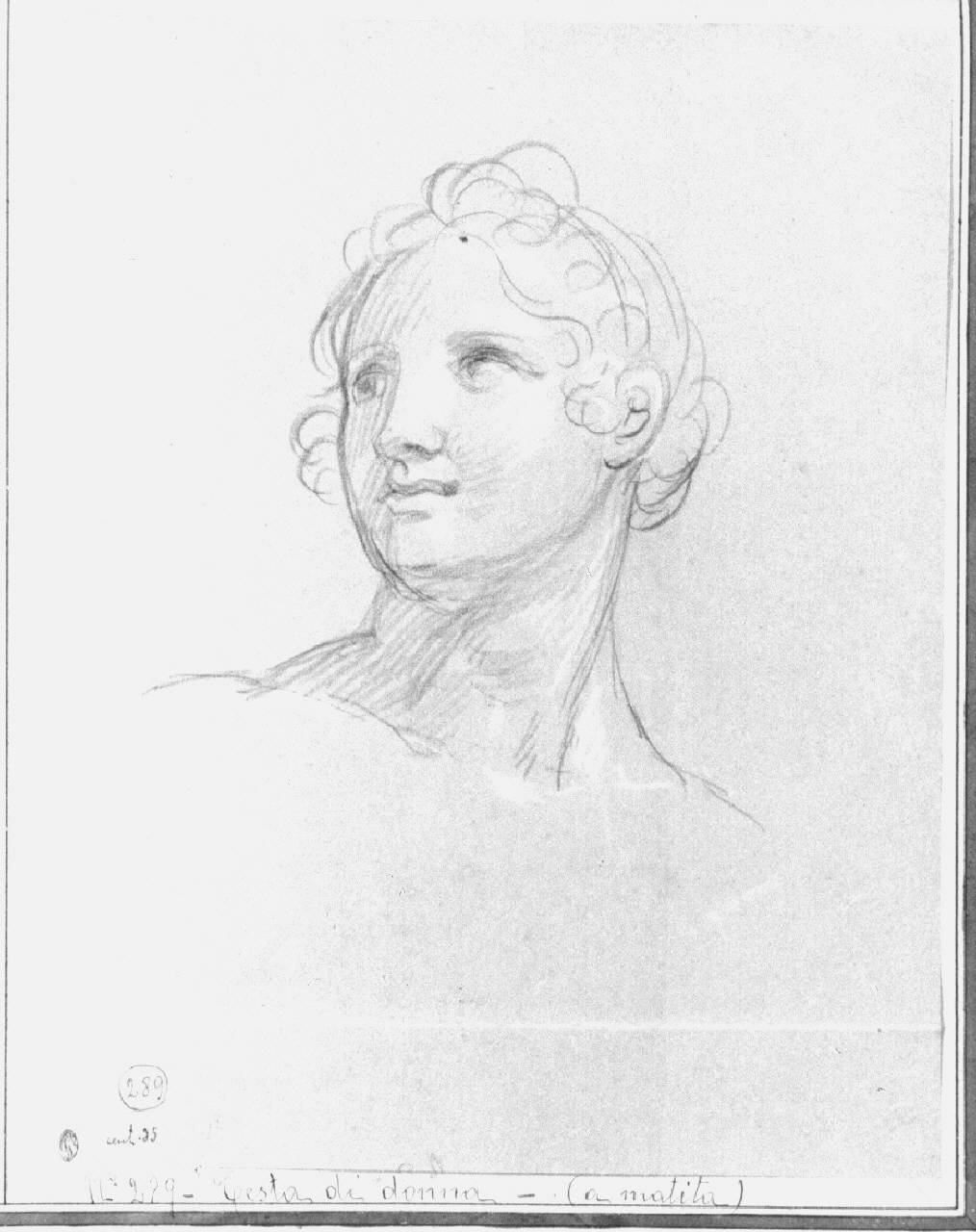 - NOTIZIE STORICO CRITICHE Il disegno è uno studio di volto femminile. Non è facile individuare l'opera di riferimento, ma stilisticamente è vicino agli studi per gli affreschi di Palazzo Reale eseguiti da Appiani intorno al 1808-1810 e a quelli per il "Parnaso" di Villa Reale (1811).