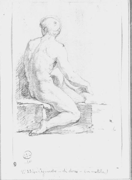- NOTIZIE STORICO CRITICHE Il disegno è lo studio di nudo maschile accovacciato e presenta i caratteri tipici di una preparazione accademica. Può quindi essere fatto risalire al periodo di formazione o alla primissima fase di attività di Appiani.