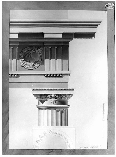 - NOTIZIE STORICO CRITICHE Disegno premiato nel 1840 nel concorso di II classe per il disegno degli ordini. Dal 1810 il concorso di II classe ammette due premi (medaglie d'argento): uno per l'invenzione e uno per il disegno degli ordini. La tavola è conservata nella cartella A I 194 che contiene i saggi premiati nei concorsi di II classe per l'invenzione e per il disegno degli ordini.