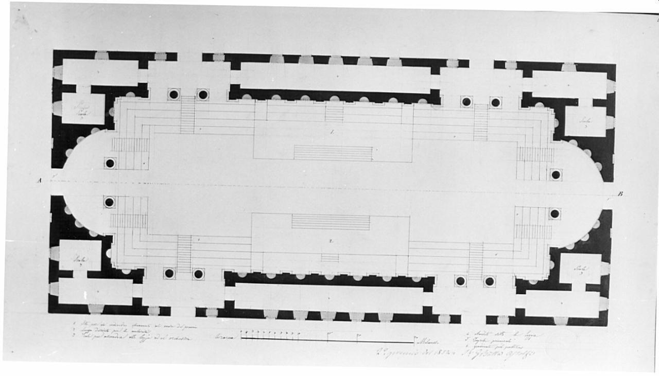 Progetto di uno scalone magnifico per palazzo principesco. architettura: scalone per palazzo principesco (pianta del piano terreno)