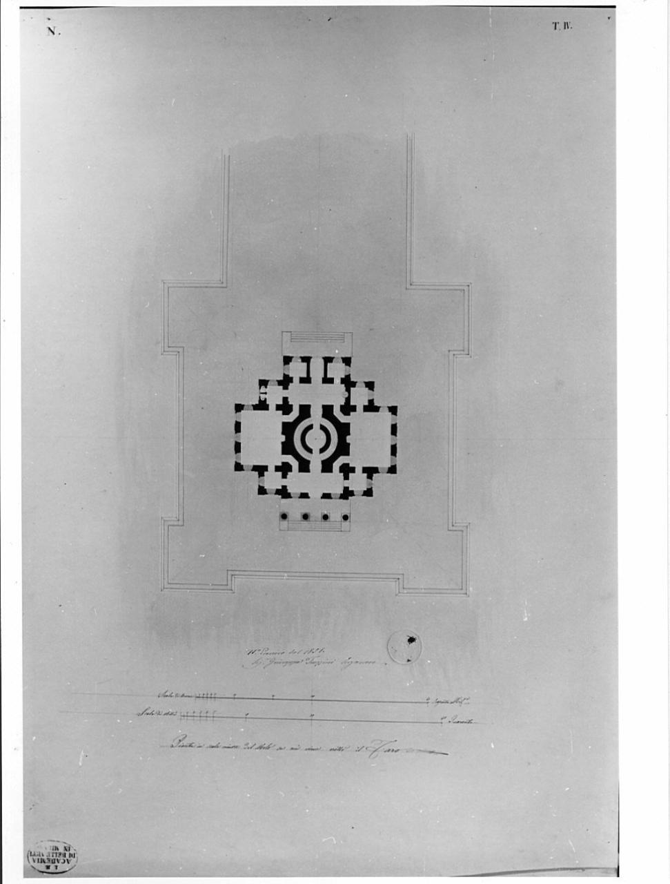 - NOTIZIE STORICO CRITICHE Appartiene ad una serie di 4 tavole presentate da Giuseppe Trezzini al Concorso di II classe per l'invenzione del 1851. La tavola è conservata nella cart. A I 194 contenente i saggi dei concorsi di Architettura di II classe.