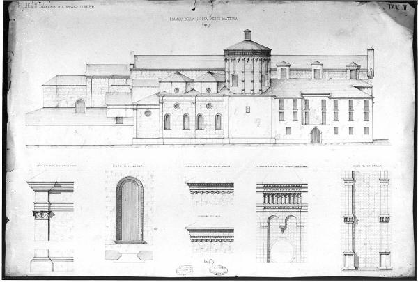 Ristauro interno ed esterno della chiesa di San Francesco di Brescia. architettura: chiesa di San Francesco a Brescia (prospetto del fianco sinistro e dettagli)