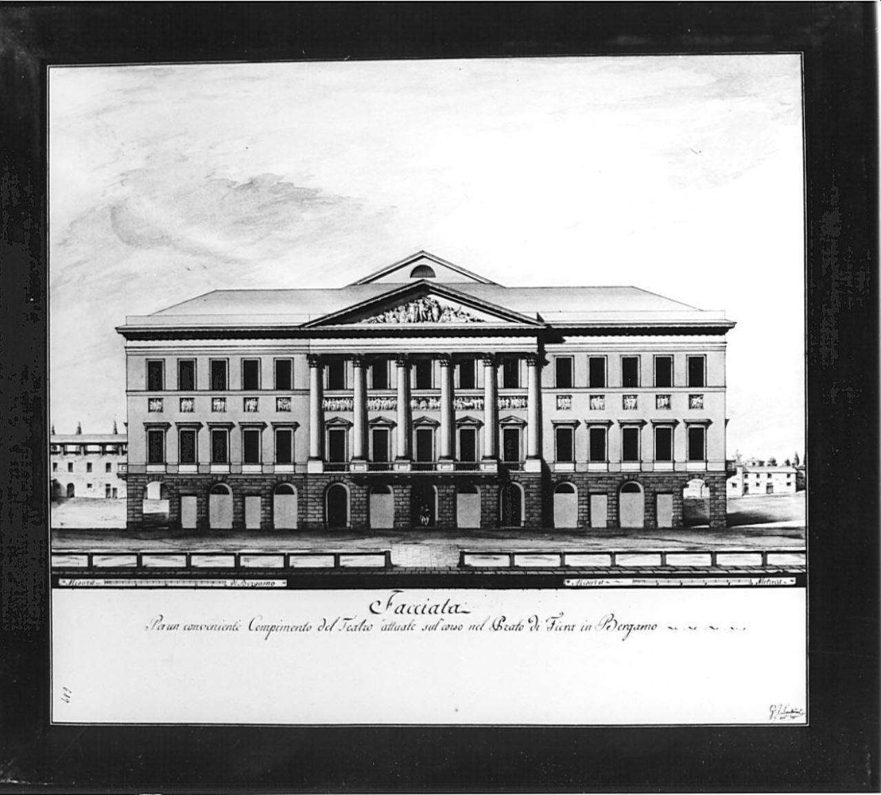 Progetto per teatro Riccardi di Bergamo. architettura: teatro Riccardi di Bergamo (prospetto)