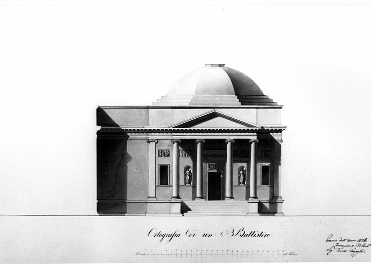 Progetto di un Battistero. architettura: Battistero (facciata, ortografia)