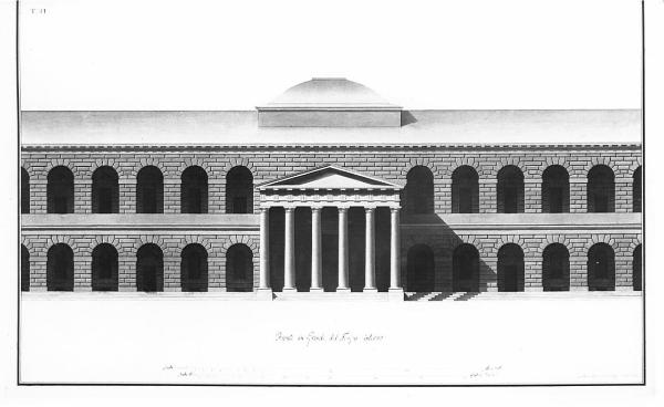 - NOTIZIE STORICO CRITICHE Il disegno appartiene ad una serie di otto tavole redatte da Francesco Peverelli per il concorso di architettura di prima classe bandito dall'Accademia di Brera nel 1811. Il tema del concorso era il progetto per un fabbricato ad uso di carcere: Francesco Peverelli vinse, in quella occasione, il primo premio ("Atti dell'I.R. Accademia delle Belle Arti di Milano", Milano 1811, p. 52; "L'idea della magnificenza civile. Architettura a Milano 1770-1848", a cura di L. Patetta, Milano 1978, p. 75, foto n. 171). L'autore, di origini luganesi, dopo aver terminato gli studi di architettura presso l'Accademia di Brera, collaborò con l'architetto Luigi Cagnola: alla morte di questi, nel 1833, portò a termine i lavori della Rotonda di Inverigo e dell'Arco della Pace di Milano.