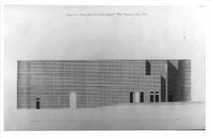 - NOTIZIE STORICO CRITICHE Il disegno appartiene ad una serie di 16 tavole redatte da Giacomo Bianconi probabilmente nel 1807 come saggio del terzo anno di pensionato a Roma. Nato a Milano egli studiò lettere, scienze pure e architettura, frequentò l'Accademia di Belle Arti di Brera vincendo due volte nei concorsi di I e II classe. Nel 1804 ottenne la borsa di studio, di quattro anni, per il soggiorno romano. Fu disegnatore presso lo stato maggiore militare del genio italiano e smise l'attività quando partì per Roma. Negli anni di pensionato inviò a Brera i saggi di fine anno e numerosi altri lavori elogiati dal Ministro degli Interni e dal Senato Accademico. Ciò gli consentì di ottenere un ulteriore assegno per compiere un giro scientifico in altre città italiane. Tornato a Milano divenne, nel 1810, professore di architettura all'Accademia Carrara di Bergamo. Negli anni successivi ottenne varie cariche onorifiche e operò in area lombarda (cfr. Francesco Ponzoni "Cenni biografici intorno al fu Giacomo Bianconi...", Milano 1858).
