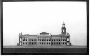 Un palazzo pubblico isolato con due ingressi su due piazze o strade. architettura: municipio (prospetto)