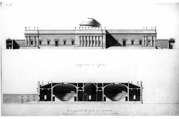 Un liceo per l'istruzione di 400 individui da erigersi in una città capitale. architettura: Liceo (prospetto e sezione)