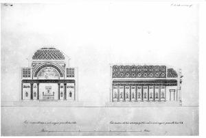 - NOTIZIE STORICO CRITICHE Il disegno appartiene alla Serie di tavole presentate da Ferdinando Caronesi al concorso di I classe del 1826 di cui risultò vincitore (Atti, 1826 p.36). Le tavole sono rilegate nella cartella M I contenente i progetti vincitori dei concorsi di I classe dal 1823 al 1829. Nel 1823 Caronesi espone per la scuola di architettura e prospettiva il disegno di un "Tempio Dorico e due capitelli Jonici" (Atti, 1823 p.48); nel 1824 si distingue ancora vincendo il concorso di II classe per prospettiva (Atti 1824 p.38); sempre nel 1824 espone il disegno della Porta Nuova di Milano (Atti, 1824 p.40).