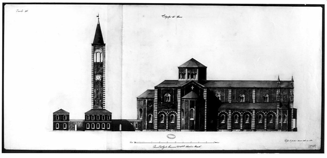 Una chiesa parrocchiale cui siano annesse le abitazioni del parroco... erette nello stile dell'architettura italiana del XIII secolo. architettura: chiesa (fianco)