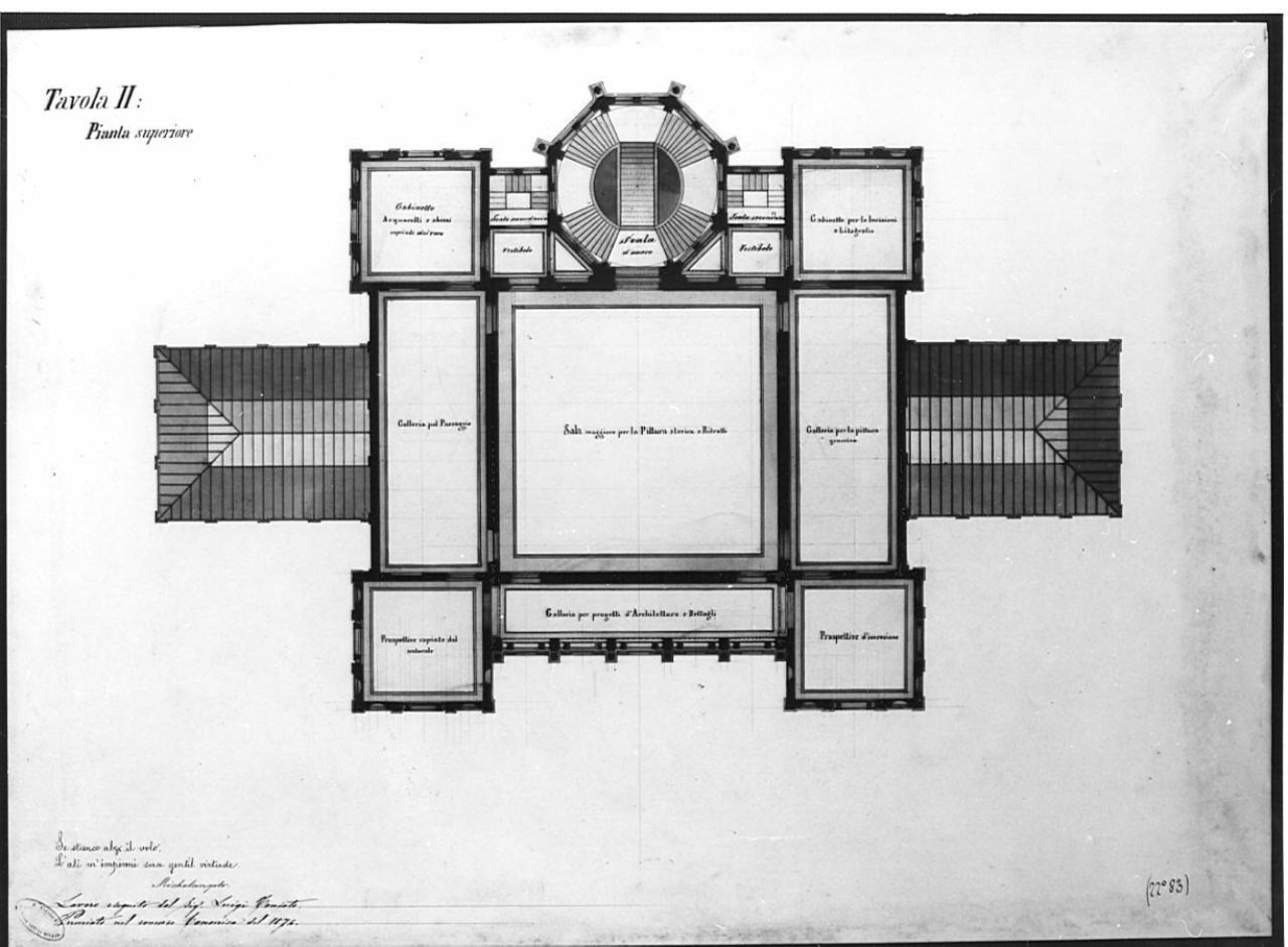 Edificio per esposizione permanente di opere di belle arti. architettura: edificio per esposizioni permanenti di Belle Arti (pianta del primo piano)