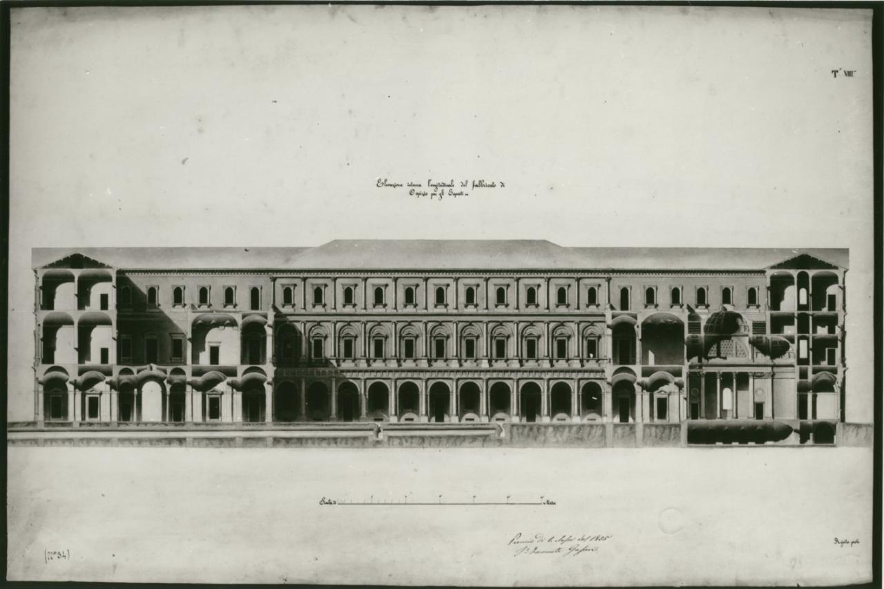 Ospizio per gli esposti e le partorienti povere e paganti, conveniente per una popolosa città centrale. architettura: Ospizio (sezione)