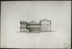 Edificio per teatro privato da costruirsi accanto a un palazzo di campagna. architettura: teatro (sezione)