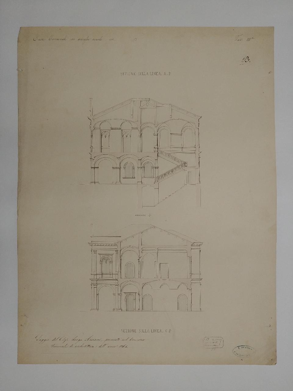 Casa comunale con annesse scuole ecc.. architettura: casa comunale con annesse scuole (sezioni)