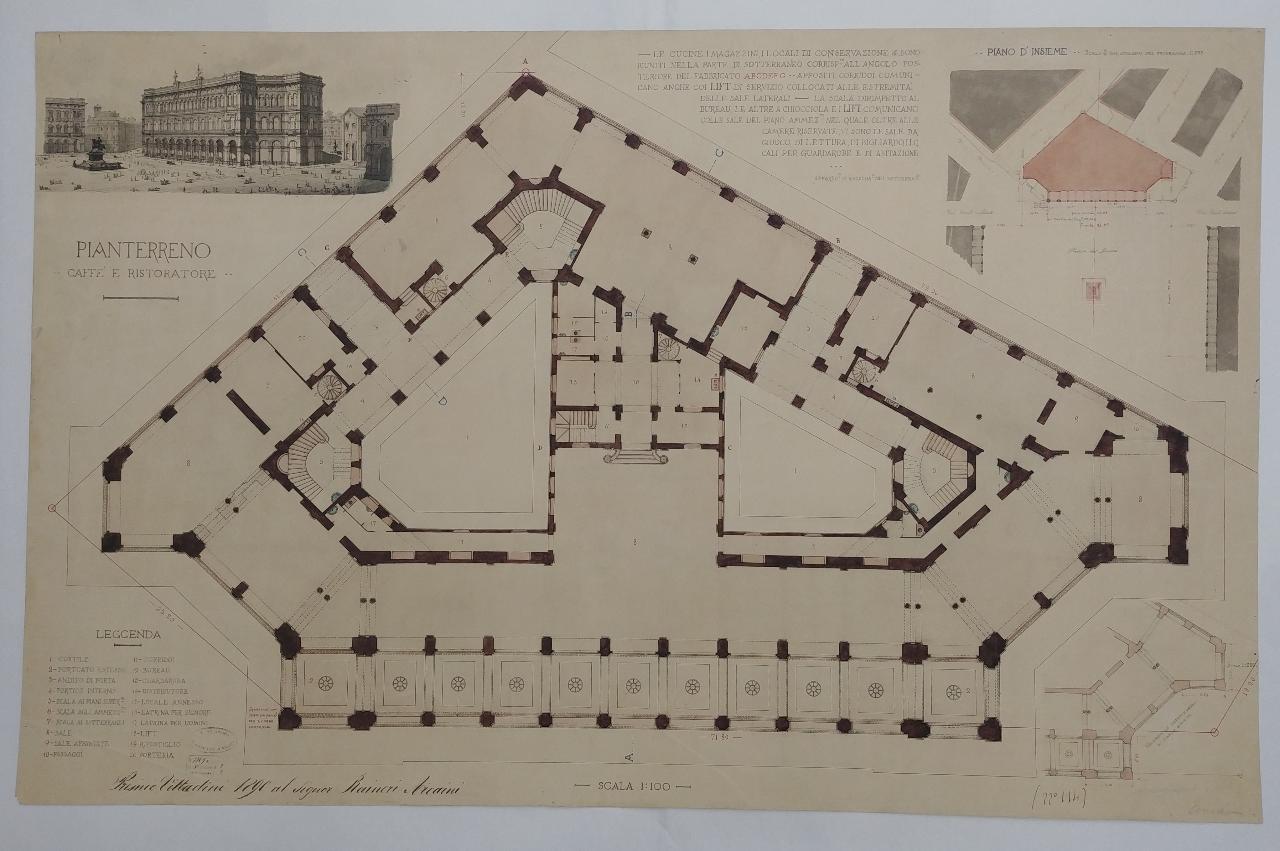 Nuovo palazzo formante il lato di fondo della piazza del Duomo e da costruirsi sull'area disegnata nel tipo annesso al programma. architettura: edificio per piazza Duomo (pianta del piano terra)