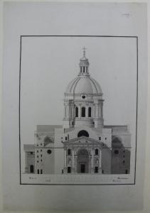 - NOTIZIE STORICO CRITICHE Il disegno faceva parte di una cartella contenete, come riporta la scritta sulla stessa (probabilmente di mano del Segretario dell'Accademia Giuseppe Bossi), i "Disegni del Tempio di S. Andrea in Mantova architettura di Giova Battista Alberti. Questi disegni furono copiati da quelli, che fece sull'opera il Signor Marconi attuale Professore di Ornato nell'Accademia di Bologna, e che il fu professore Giacomo Albertolli fece venire dall'Accademia di Mantova ecc. ecc.".