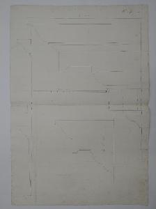 Alzato di mensola: profilo e sezione. Il foglio è ripirgato in tre parti con linee a matita.