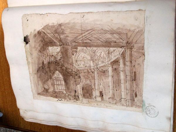 " Fondo d'Antica Tore corispondente a varie prigioni". Interno di carceri a pianta circolare con scala elicoidale.