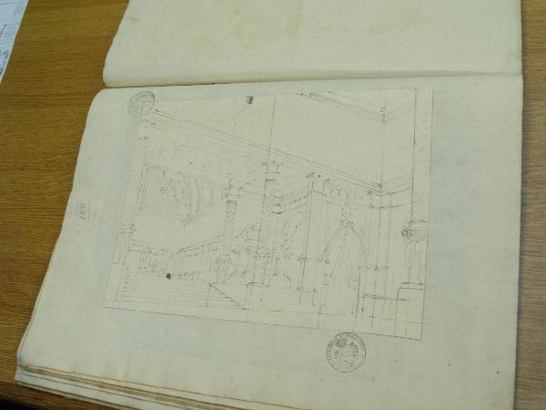 - NOTIZIE STORICO CRITICHE "Non identificato." (Viale Ferrero 1963)\nIl disegno fa parte dell'album "K I 18" recante la scritta "N.10 Decorazioni Gotiche d'Invenzione di Gio. Galliari in n. 29". Come per l'album K I 17 e K I 18, questa scritta sembrerebbe successiva ai disegni. Viale Ferrero (1963) precisa che " l'indicazione 'Gio. Galliari' non è esatta; né se si riferisce a Giovanni Antonio perché si trovano molti disegni certo posteriori alla sua morte; né se si riferisce a Giovannino perché molti altri disegni sono datati in anni in cui egli era ancora bambino. A differenza degli album K I 17 e K I 18, i fogli del K I 19 recano la numerazione romana. L'album ha partecipato a "Mostra del barocco piemontese", Torino 1963: l'Accademia conserva documentazione precedentemente allegata all'album. Il disegno non è identificato.