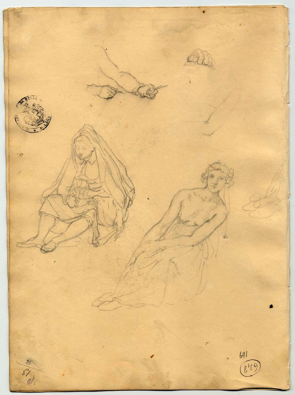 Vecchia mendicante, figura femminile e studio di mani (già Studi di figure femminili e mani - Samek). figure femminili e mani