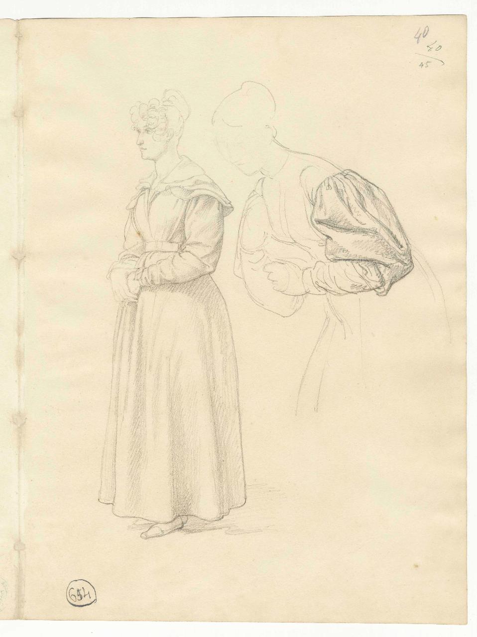 Ritratto di donna all'impiedi e figura a lato. figure femminili