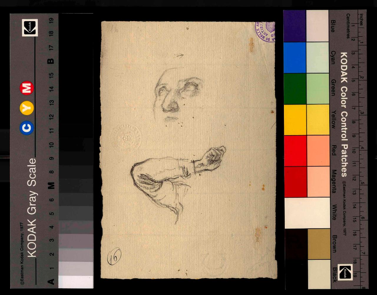 Studio di volto e braccio piegato. volto, braccio, mano