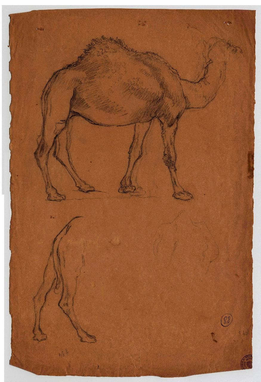 Dromedario e studio di zampe posteriori. dromedario, zampe