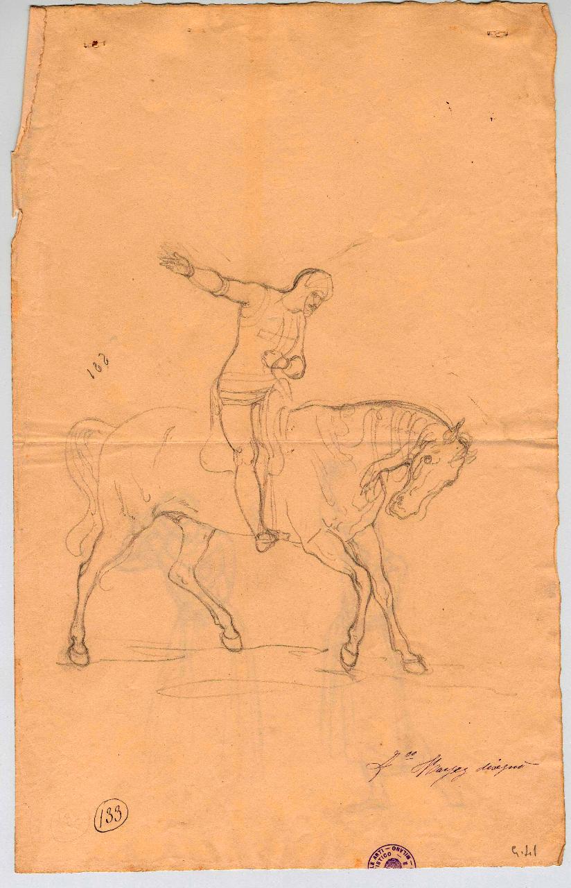 Crociato a cavallo. figura maschile, cavaliere, cavallo