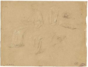 Schizzo di ignudo e mezze figure varie tra cui tre testine di giovane donna. nudo maschile e teste femminili