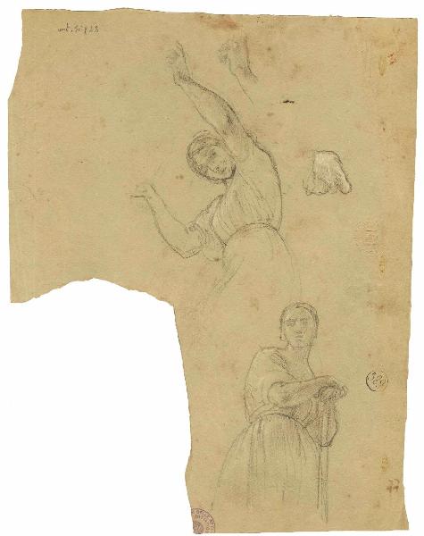 Due mezze figure di donna/ Ignudo orante e schizzi varii. figure maschili | figure maschili