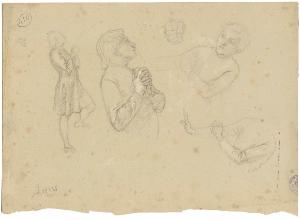 Figura di gentiluomo in atto di preghiera e schizzi varii. figura maschile