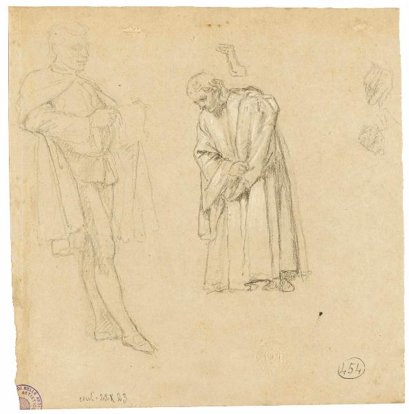 Scena per la "Deposizione di Francesco Foscari"?/ Studio di testa di vecchio e mani. scena storica, Francesco Foscari ?| testa di vecchio, mani