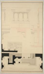 pianta, sezioni e dettagli. ornato: cantoria con organo
