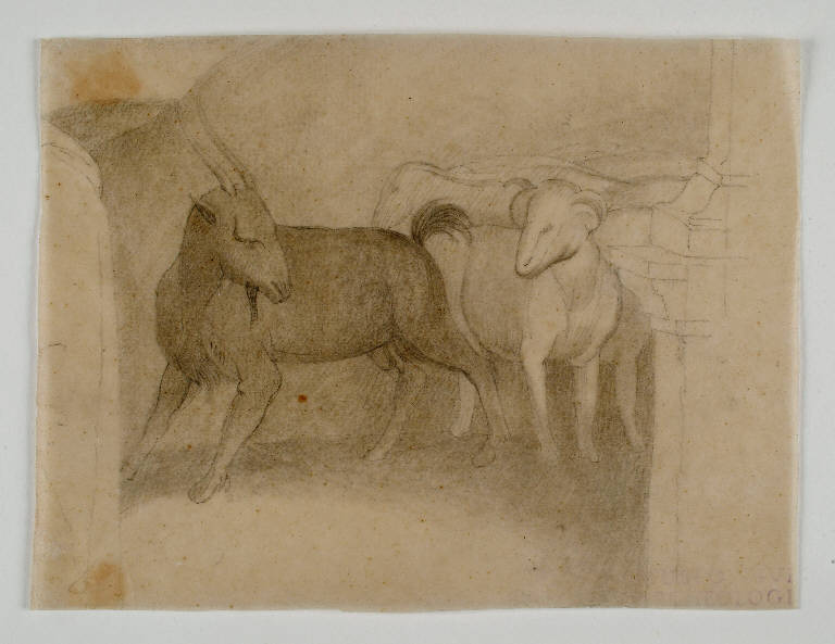 - NOTIZIE STORICO CRITICHE Nel disegno con le tre caprette è stato riconosciuto (CASARIN, 2003, pp.86-87) un ulteriore studio della tavola del Perugino già oggetto di altre tavole. L'identificazione è stata possibile grazie ai particolari "tagliati" ai margini del foglio, ritagliato in maniera irregolare, e grazie all'uso della medesima tecnica a tratteggio particolarmente adatta alla resa di immagini pittoriche (vd. anche 0300144677 e 0300144678).
