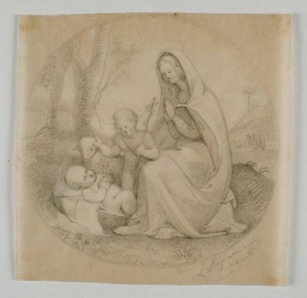 - NOTIZIE STORICO CRITICHE L'opera trae spunto da modelli quattro-cinquecenteschi, e va segnalata la vicinanza con il disegno minardiano liberamente ispirato a "La bella giardiniera", dipinto di Raffaello conservato al Louvre (SUSINNO, Disegni di Tommaso Minardi (1787-1871), catalogo della mostra alla Galleria Nazionale d'Arte Moderna di Roma, Roma, De Luca, 1982, vol. I°, pp. 222-225).