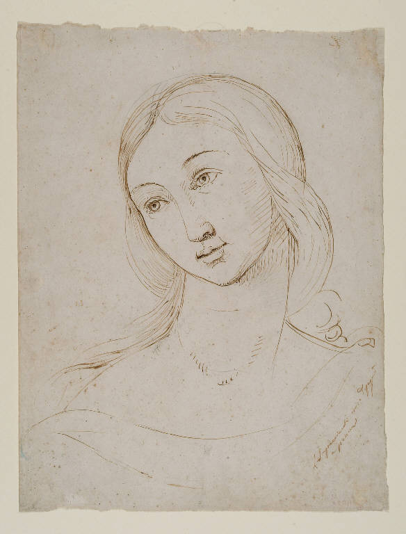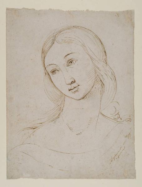 - NOTIZIE STORICO CRITICHE Il disegno è da attribuire con sicurezza all'Impaccianti, da cui è firmato, nonostante l'iscrizione a matita, appena leggibile, riporti il nome di Sanguinetti. Si tratta probabilmente della mano del Bellini, indotto forse all'errore dalla presenza di due acquerelli dell'artista nella collezione e dall'iscrizione "Sang". Gli studi recenti (CASARIN, 2003, pp.76-77) hanno messo in relazione il disegno con gli affreschi perugineschi del Collegio del Cambio; il fatto che tra le opere dell'artista romano si possano individuare altri studi tratti da opere site in Umbria (vd. 0300136292, 0300144677, 0300144678, 0300144702), fa supporre suo un viaggio nella zona, dove Impaccianti ha modo di indagare i modelli della cultura purista, senza però riuscire a dare loro un'interpretazione personale.