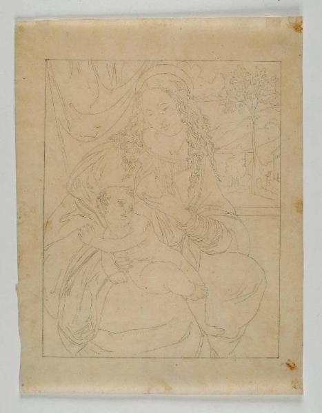 - NOTIZIE STORICO CRITICHE Il disegno è la copia a ricalco di un'opera del Giampietrino conservata alla Gallleria Pallavicini di Roma, che fu studiata e riprodotta anche da Tommaso Minardi, il quale la attribuiva a Leonardo, sul quale l'artista tenne un discorso all'Accademia di San Luca nel 1834; per questo la datazione del disegno è stata lievemente anticipata (CASARIN, 2003, pp. 72-73). Impaccianti qui dedica la sua attenzione soprattutto alla resa lineare, tralasciando di descrivere il chiaroscuro.